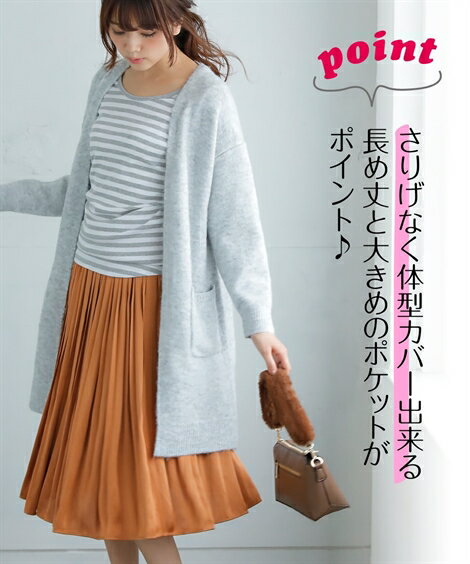 [M-L〜LL] ふわもちロング丈ニットカーディガン ニッセン nissen 杢グレー ラベンダー杢 ピンク杢 オフホワイト杢 黒杢 カラー 杢グレー/ラベンダー杢/ピンク杢/オフホワイト杢/黒杢 サイズ 1(S~M)/2(L~LL) 素材 品質=アクリル74%・ポリエステル24%・ポリウレタン2%(ニット 5ゲージ)ポケット前2 デザイン上、全体的にゆったりとしたシルエットになっております。