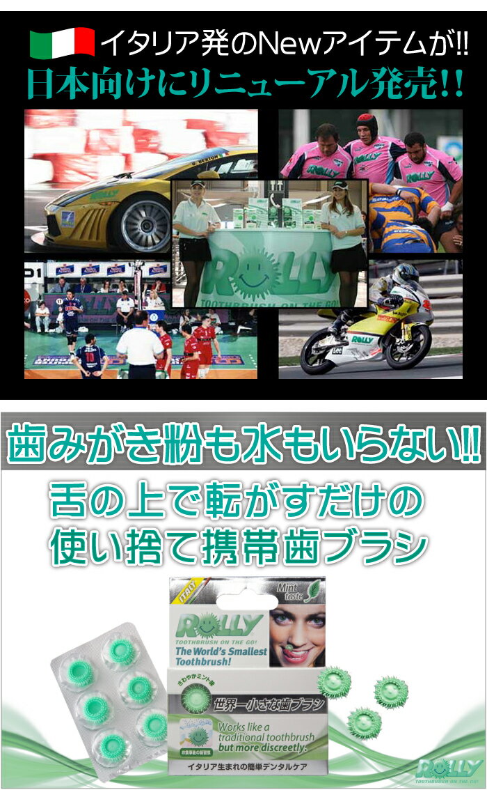 ■商品名:携帯歯ブラシ ローリーブラッシュ ■内容量:6コパック×1箱 ■材質:ポリマー樹脂 ■全成分表示: 特殊ポリマー、アラビアガム、ペパーミント香料(桂皮アルデヒト、リモネン、リナロール、オイゲノール)、キシリトール、スペアミント、着色(グリーン)、アスパルテーム ■生産国:イタリア ■製造・メーカー:クリエイション株式会社 ■区分:化粧品■製造国:日本製【免責事項】 ※自社販売と在庫を共有しているためタイミングにより欠品、お取り寄せとなる 場合がございます。